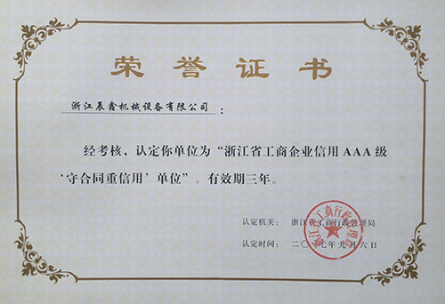 根據《浙江省工商企業信用等級“守合同重信用”單位認定管理辦法》的規定,我公司被認定為“浙江省工商企業信用AAA級‘守合同重信用’單位”。