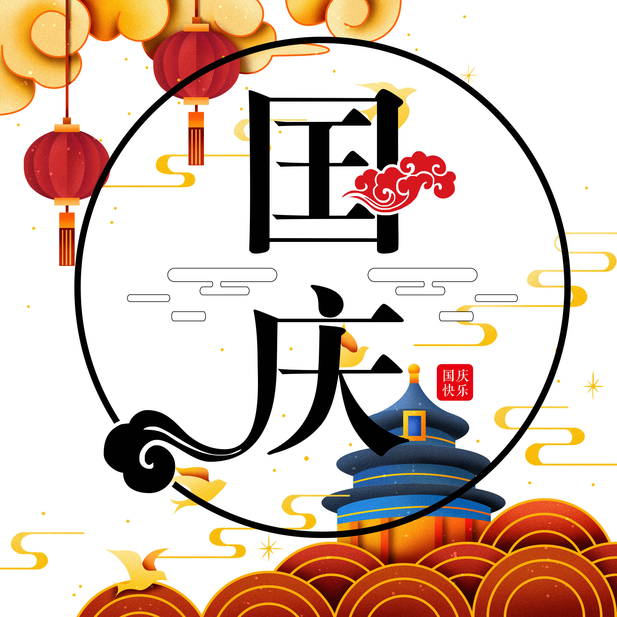 燈籠高懸迎國慶,紅旗飄飄喜氣濃