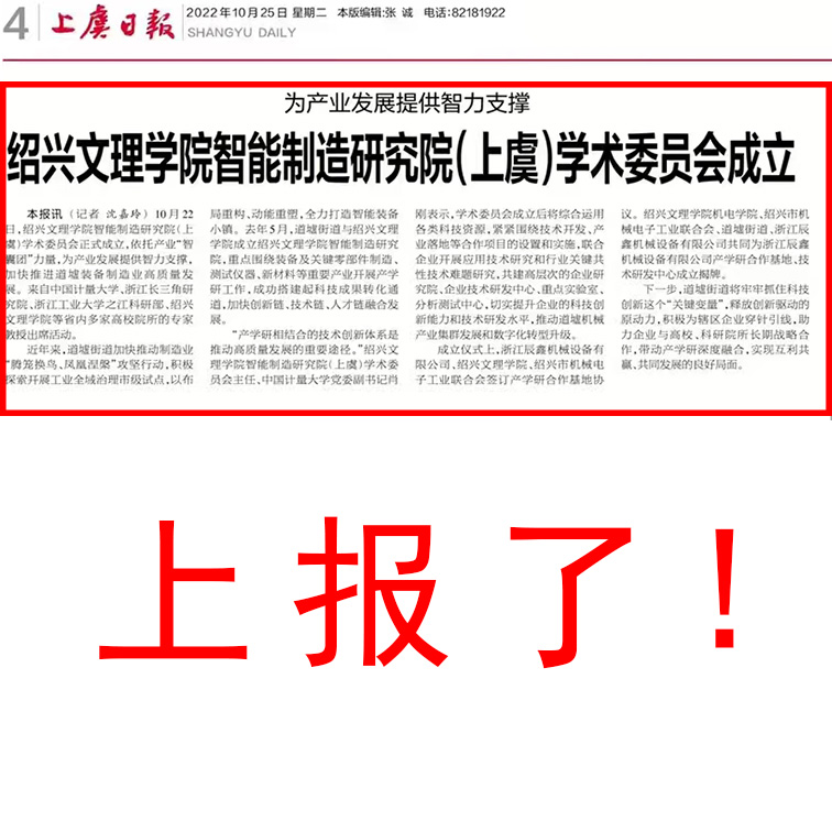 紹興文理學(xué)院智能制造研究院(上虞)學(xué)術(shù)委員會 暨浙江辰鑫機械設(shè)備有限公司產(chǎn)學(xué)研合作基地/技術(shù)研發(fā)中心 成立儀式在我公司圓滿召開