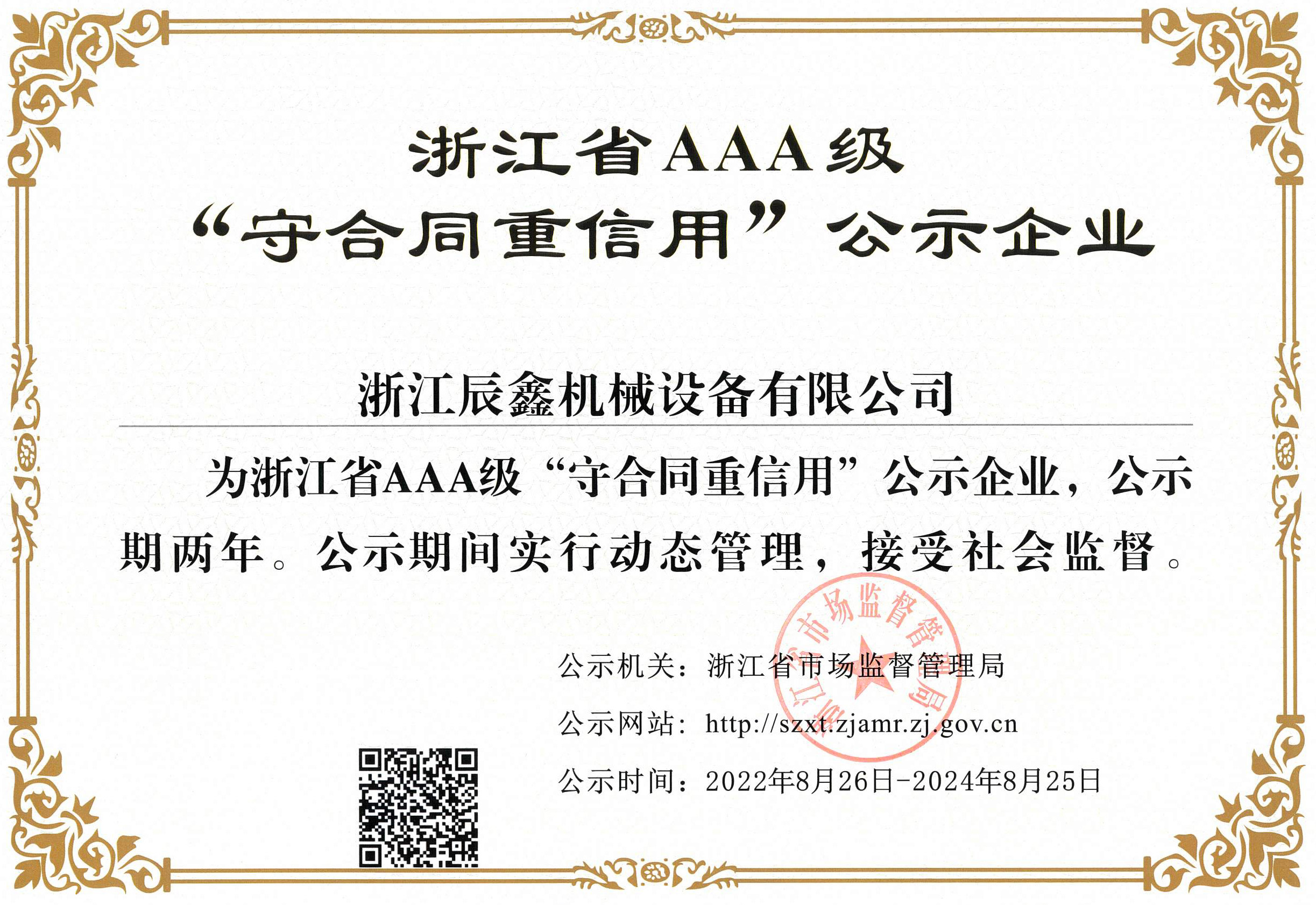 榮獲浙江省AAA級守合同重信用企業(yè)