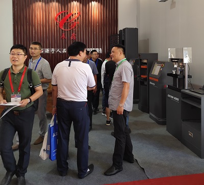 大會結束之后,就正式拉開了展覽會的帷幕。在2019中國(紹興)智慧測試及檢驗檢測展覽會中,我公司這次帶去了三臺試驗機,分別是CXWAW-1000S型電液伺服萬能材料試驗機,CXYAW-2000SX型微機控制壓力試驗機以及CXYAW-300S型微機控制壓力試驗機。同時我們還帶去了最新的技術,伺服泵控技術和恒速節流技術。經過公司精心準備,憑借精湛的技術水準,吸引了眾多參會代表與采購商的駐足觀看與咨詢洽談,都贏得了參會代表與采購商的關注和好評,取得圓滿成功!