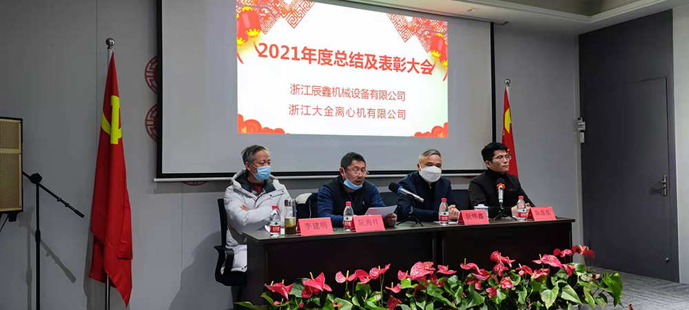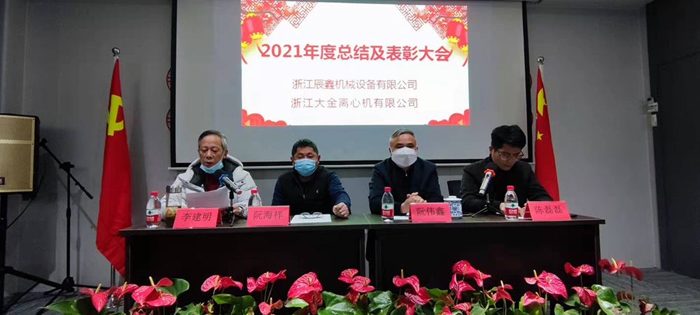 2022年1月14日,公司舉辦了2021年度總結及表彰大會。董事長阮偉鑫、總經理阮海祥、大金銷售副總李建明、生產副總陳磊磊出席會議并作重要講話。會議總結了辰鑫、大金2021年度的工作成績,全面部署了明年的工作目標。