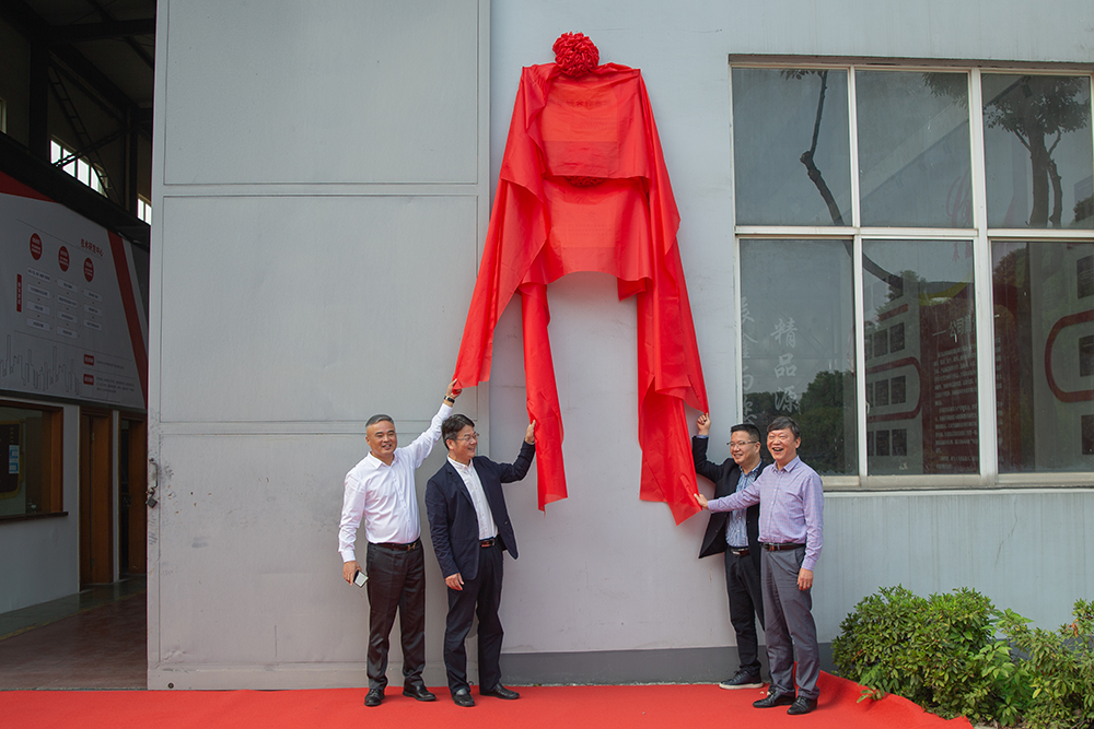 會后,董事長阮偉鑫、道墟街道戴忠偉書記、紹興文理學院陳文平書記、紹興市機械電子工業聯合會王文奎副會長共同為產學研合作基地/技術研發中心揭牌,見證這歷史性的一刻。